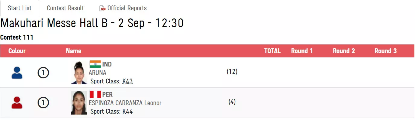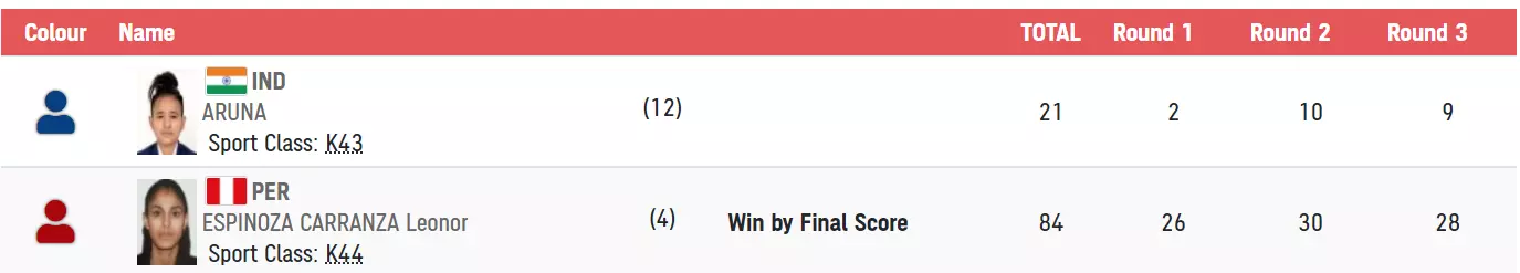 The first and only Indian at the Paralympics, Aruna Tanwar, will commence her quarterfinal bout against Peru's Leonor Espinoza. The Peruvian had finished 5th in the London Games back in 2012.