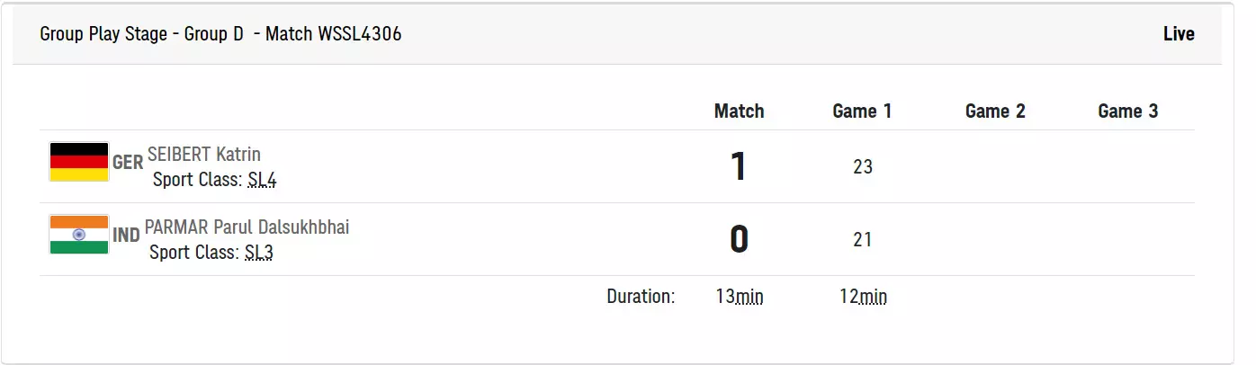 Parul Parmar loses a hard-fought first game at 23-21. The German won three points in a row to take the game!