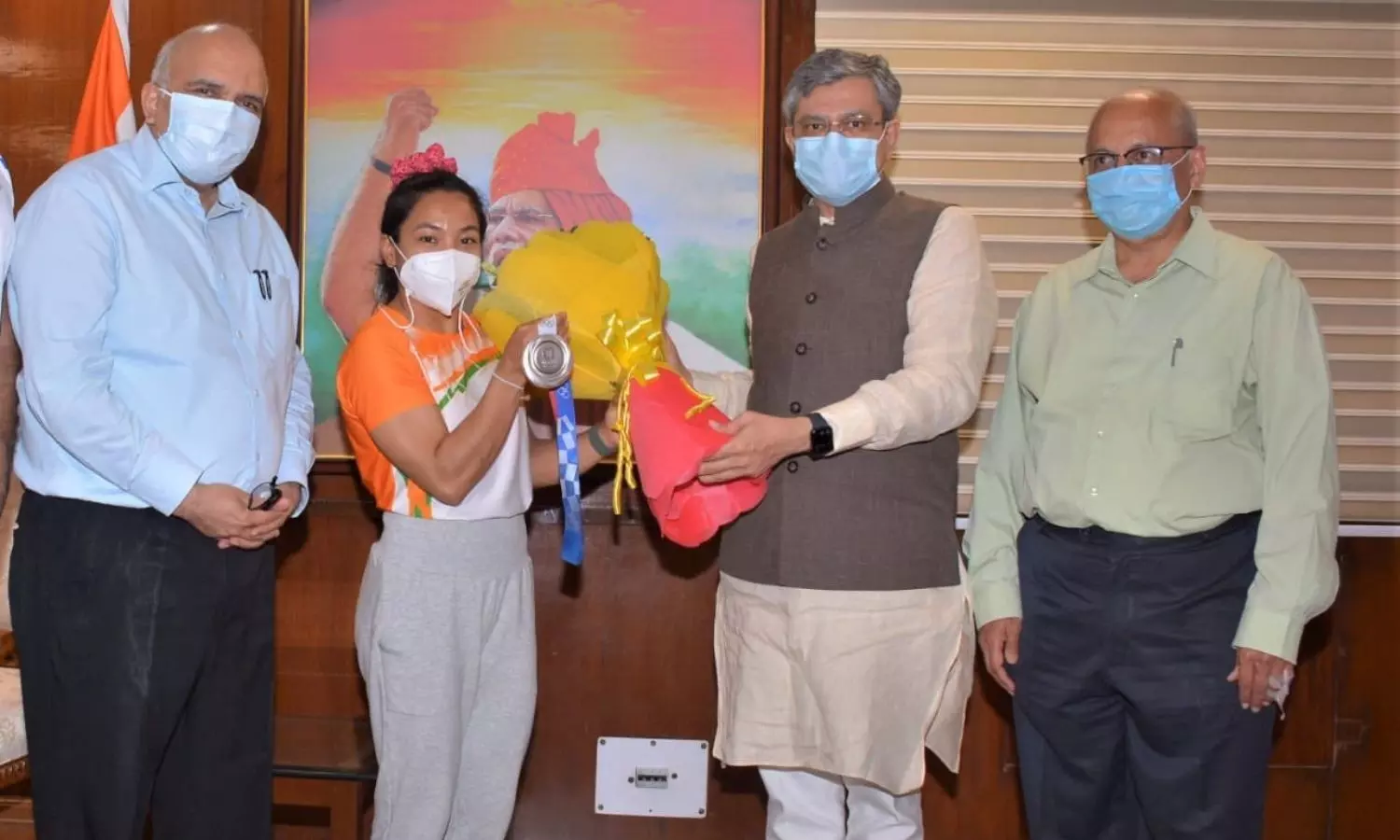 Railways weightlifter olympic silver medalist Mrabai Chanu felicitated by Ministry of Railways