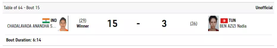 Bhavani Devi wins her opening game as she dominates the score by 15-3