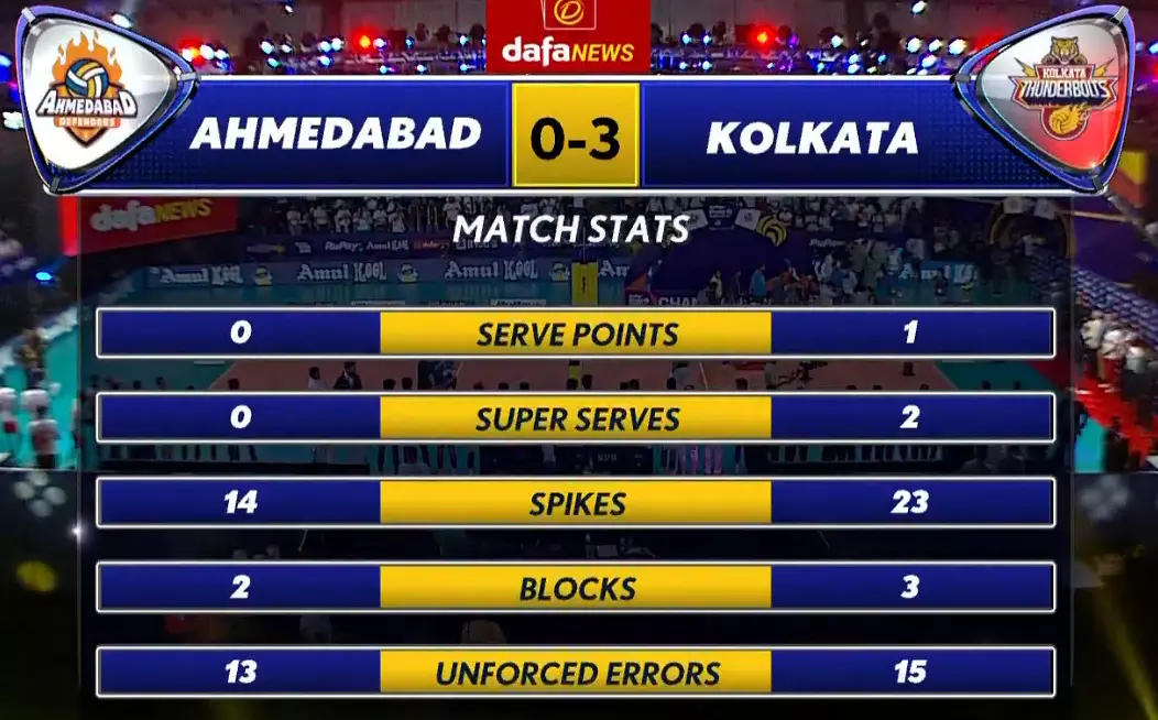 Kolkata Thunderbolts had three championship points in the third set. They needed two to win the match.