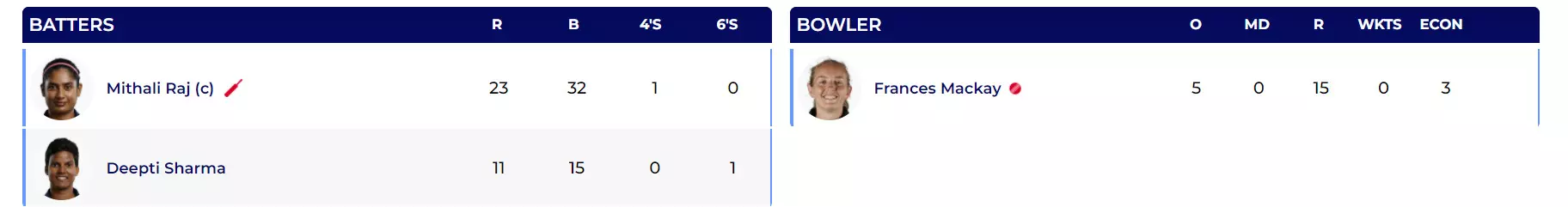 Frances Mackay continues to keep things tight with her off-spin. She is yet to get a wicket, but has given just 15 off her 5 overs.
