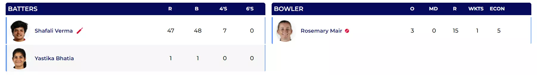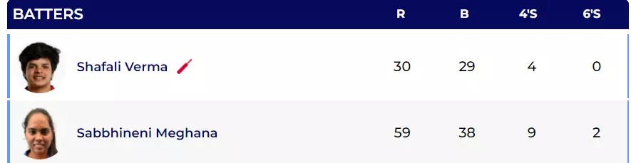 Just short of the century opening partnership are Shafali and Meghana now. Amidst all the Meghana flamboyance, Shafali has done well to keep her company.