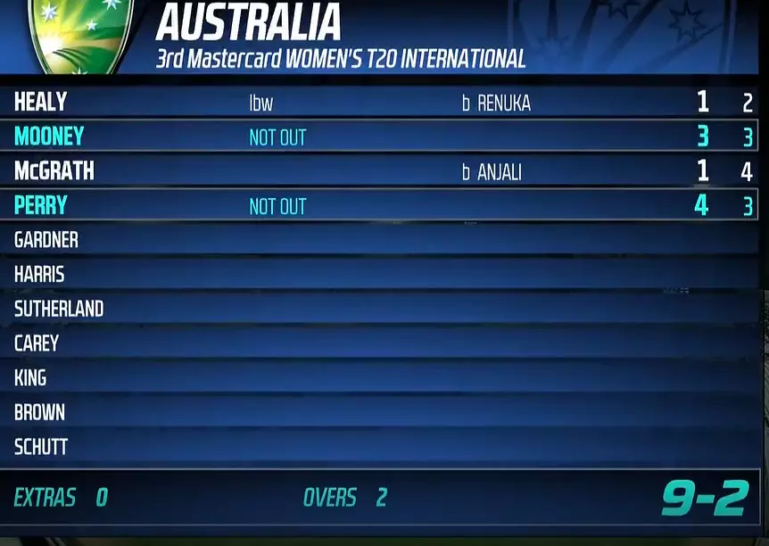 A brilliant start from Renuka Thakur. She kept it tight and conceded just five off the first over. More importantly, she has sent the dangerous Healy back.