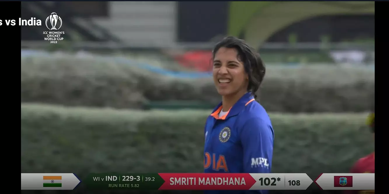 She was given a chance early on in the innings and has made the most out of it. Yet another World Cup century for the southpaw against the West Indies and she reaches there with a pull off Hayley Matthews towards the fine-leg boundary.