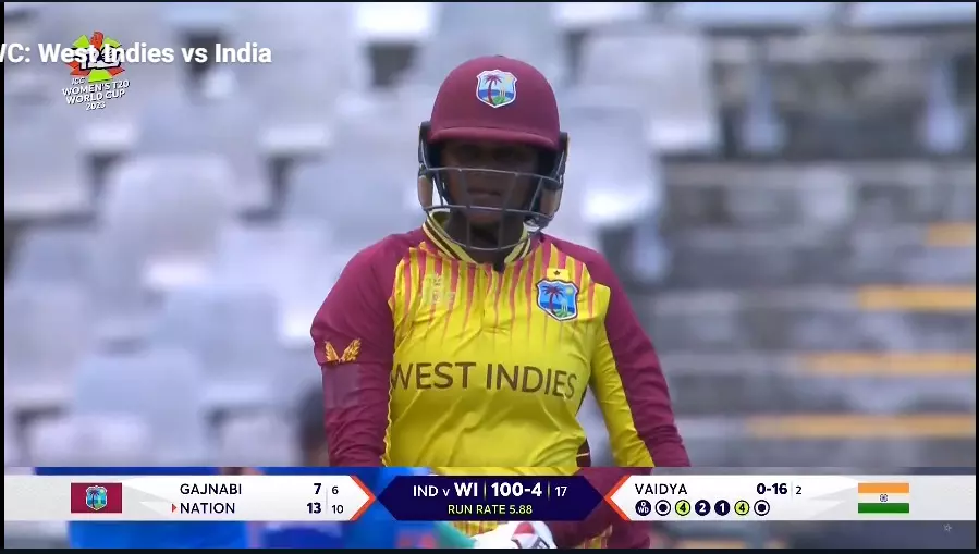 Renuka Singh is called back and WI is unable to get out of shell. Despite one and two boundaries here and there, they haven't been able to up the scoring the rate.
