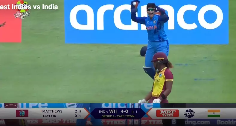 Harmanpreet brings in Pooja for the second over and she gets Hayley to knick the first ball. West Indies lose their captain.