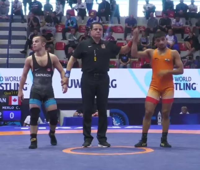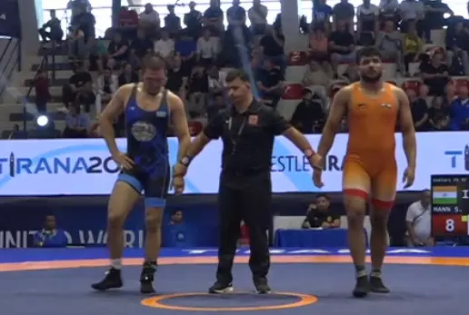 Udit in action at the elimination round of World Wrestling Championships 2024.