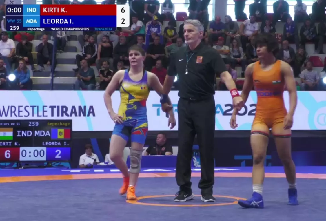 Kirti upsets the former world medalist to progress to the Repechage Round 2